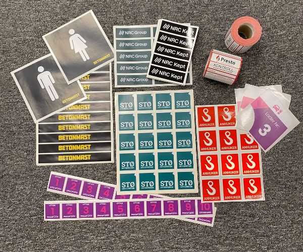 - Klistremerker, etiketter og andre produkter i alle størrelser og fasonger.